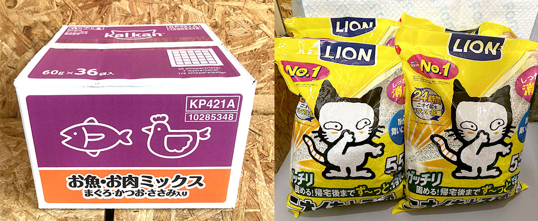 I様より、支援物資(amazon)としてウェットフード&猫砂を贈っていただきました。いつもご支援いただき本当にありがとうございます!猫たちの幸せのために活用させていただきます。